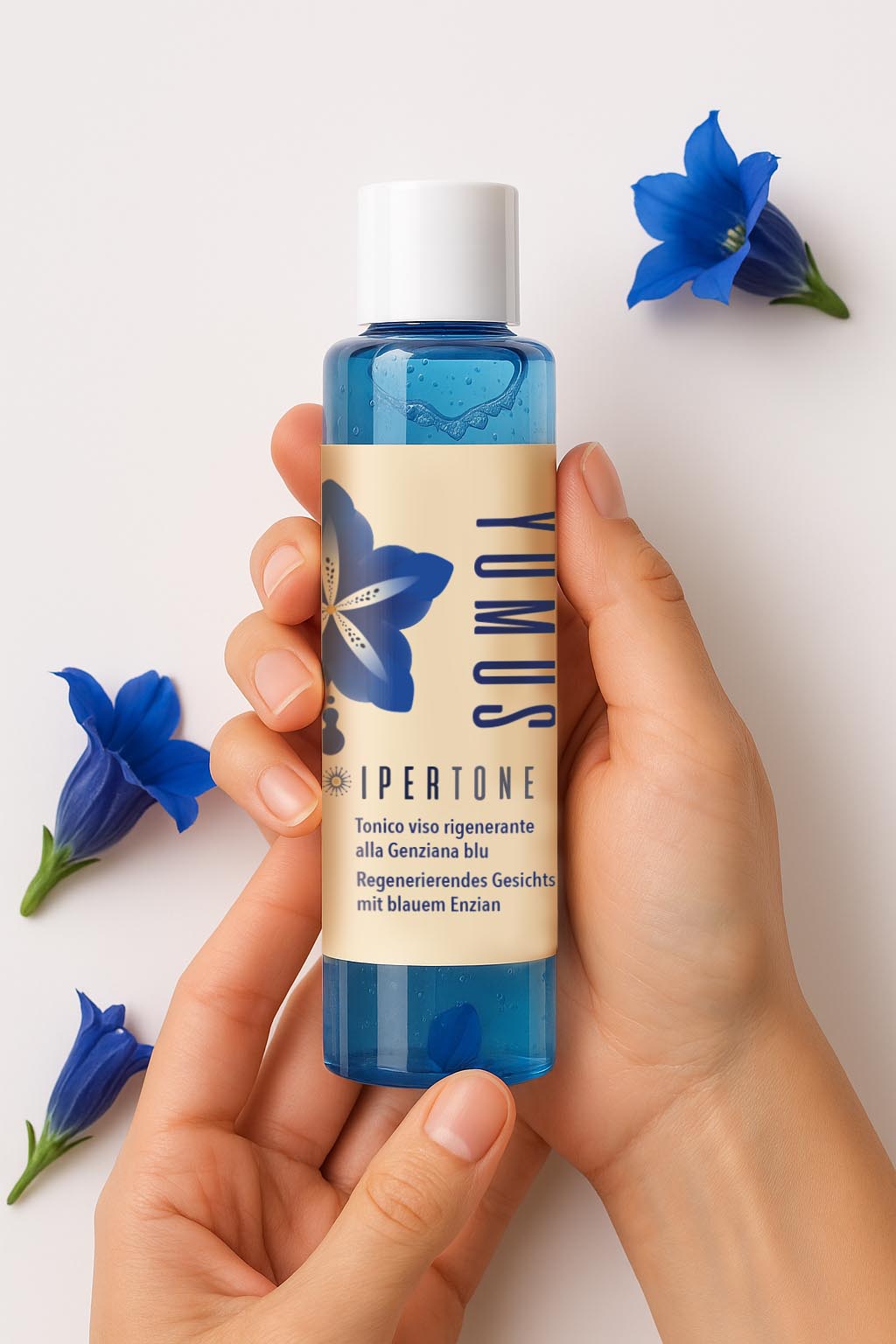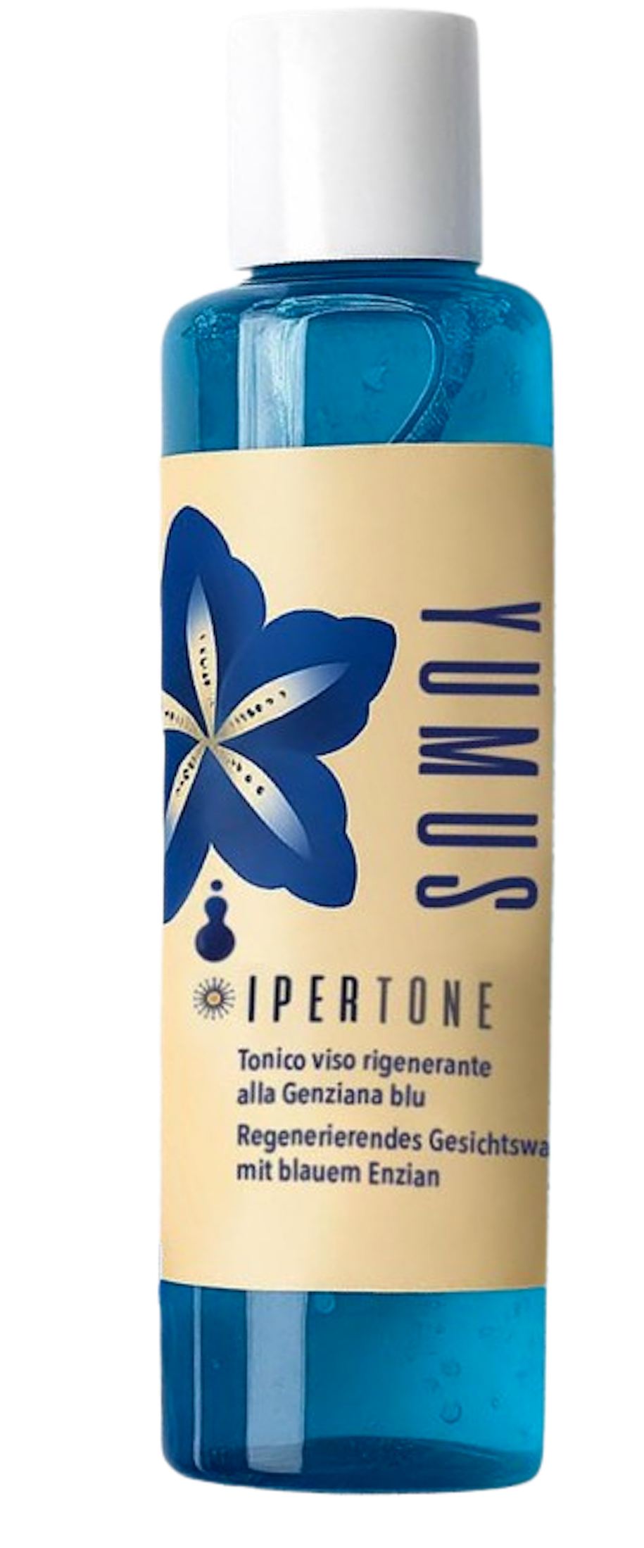 IPER TONE è un leggero tonico per la pelle dal gradevole profumo e dalla colorazione azzurrina della Gentiana acaulis blu, che apporta le sue proprietà lenitive, rassodanti e anti invecchiamento. E’ un ottimo sostegno dopo il demaquillage e prima dell’utilizzo della routine siero-crema da viso.